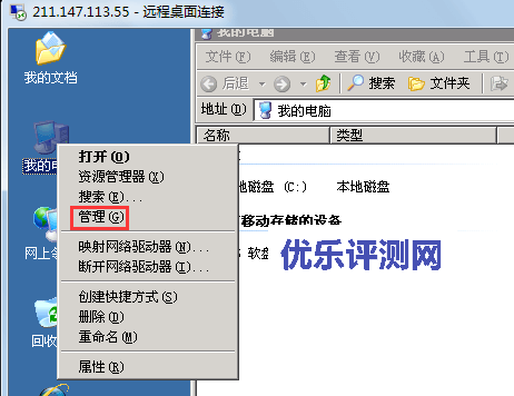 10、最后说下阿里云服务器如何设置D盘。我们开通的服务器只有C盘和E盘,D盘是光驱。下面蜗牛教大家怎么更换过来。进入服务器后右键点击“我的电脑”图标,然后选择“管理”。