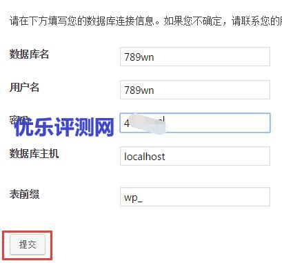 6、填写数据库信息。数据库信息自己到主机控制面板或找你买主机的客服人员获取