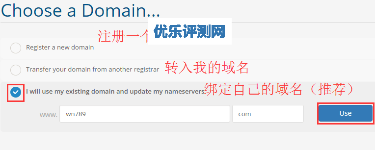 5.进入到域名绑定页面,我们选择绑定自己现有域名。