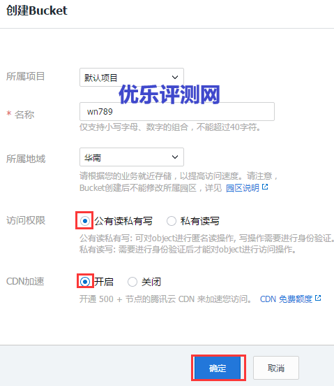 9.填写创建Bucket的相关信息。如果你要外链下载的请选择“公有读私有写”。