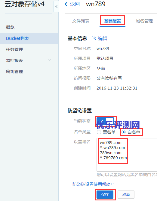 10.创建好后点击左侧导航栏的“Bucket列表”,选择你自己创建的Bucket,蜗牛是“wn789”,点击进入。