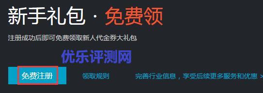 1、首先点击上面活动地址进入到活动页面,然后点击如下图的“免费注册”