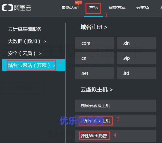 账号注册后,如果需要购买主机,我们可以按下图提示操作来查看比较实惠的虚拟主机,对于初次建站,蜗牛不建议购买云服务器,因为虚拟主机操作更简单一些。这里蜗牛主要为大家推荐三款主机:共享免费版33元/年、弹性Web托管经济版199元/年、经济共享版238/年。当然大家还可以使用9折优惠。蜗牛这里没有,大家可以到网上去搜。