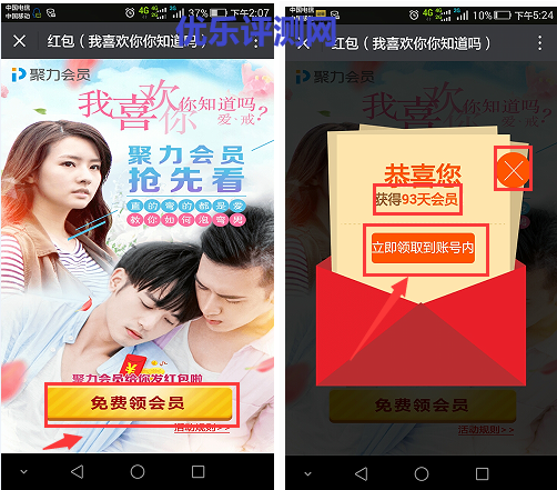 6、零门槛领取PPTV微信红包赠送PPTV聚力免费VIP最多可领20天。这里有个小技巧,只要不是领取到20天就点”X”关闭,再点领取,一直到出现获得20天再点“立即领取到账号内”。用此方法,实现人人都领取20天免费VIP会员。