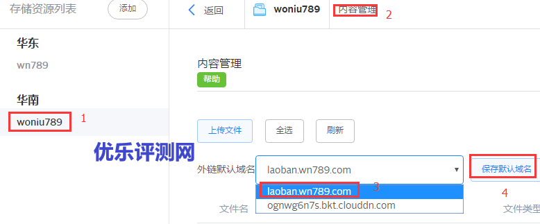 6、然后再在内容管理页面设置绑定的域名为外链默认域名。到此域名绑定成功。