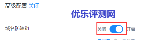 2、填写你需要绑定的域名,只支持绑定已经获取稳定的域名,未获得稳定的域名可以不要填写。然后选择好你需要的节点,在高级配置里开启“域名防盗链”。一定要先点再高级配置后的“关闭”按钮,再点点击“创建”按钮,否则无法创建。(没有稳定的域名忽略此步骤)