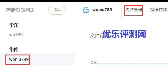 3.创建好之后我们先点击左侧存储资源列表钟自己需要管理的存储,然后点击“内容管理”。