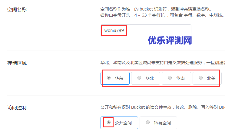 2.我们填写空间名称及选择储存线路,还有如果是要做外链的就一定要选择公开空间。