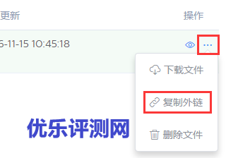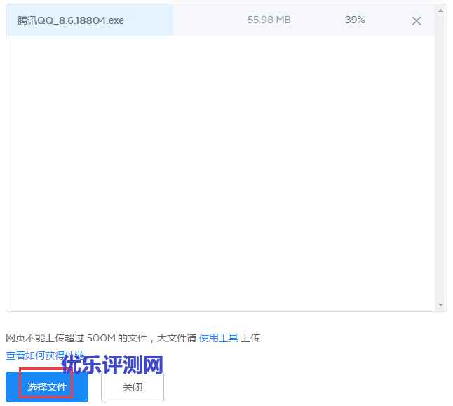 5.上传成功后点击选择文件旁的“关闭”,关闭上传页面,然后再在刚才上传的文件后复制外链,如下图: