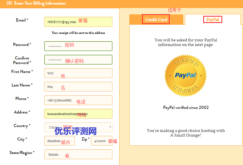 接下来就是填写注册信息和选择付款方式,建议使用Paypal。