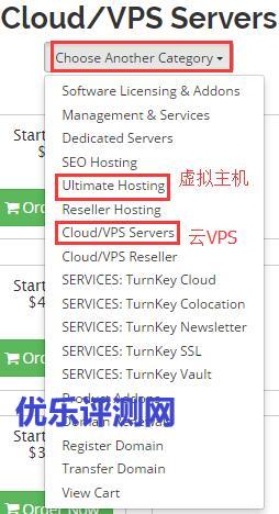 2、点击“Choose Another Category”选择服务产品,如果购买虚拟主机就选择“Ultimate Hosting”,购买VPS就点击“Cloud/VPS servers”。