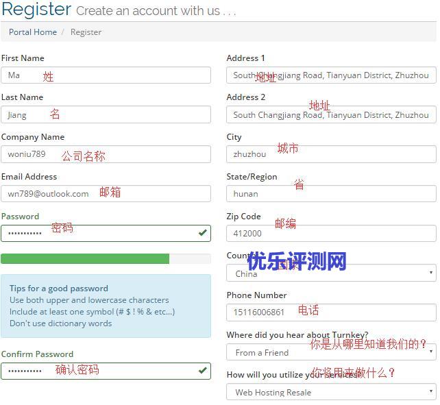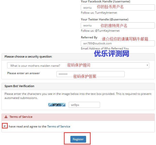 2、注册信息填写。密码需要是大小写字母加数字或符号。另外请大家在注册是填写Referred By(推荐人)为wn789@outlook.com。