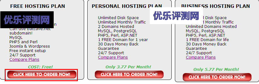 - 1、打开申请地址,找到如下图位置选择”FREE HOSTING PLAN“免费套餐,并点击”CLICK HERE TO ORDER NOW!“开始注册。