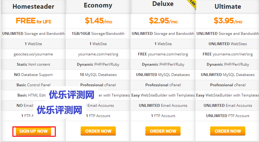 - 1、打开官方首页:http://www.geocities.ws/,选择”Homesteader“免费套餐,点击Homesteader套餐下的”SIGN UP NOW“进入到注册信息填写页面。