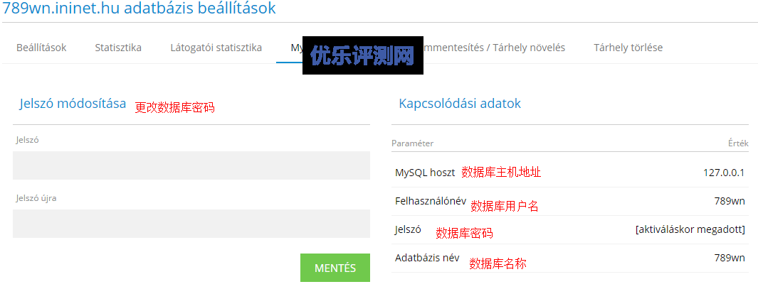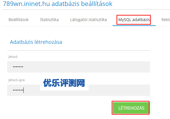 10、点击“MySQL adatbázis”进入到数据库管理页面,我们先设置密码创建一个数据库。
