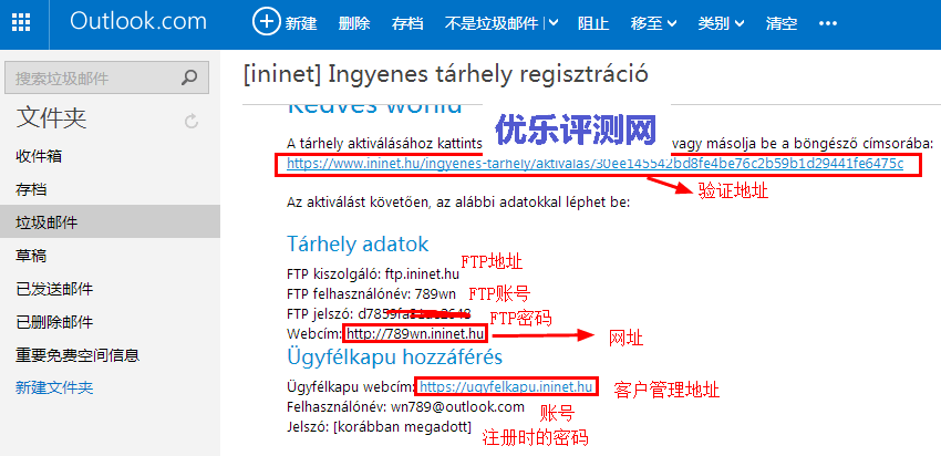 4、进入邮箱后找到一封如下图的邮件,首先点击验证地址访问,完成验证。邮件里面还有你的FTP信息,请妥善保管。