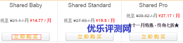 普通主机有三个套餐供选择,分别是Shared Baby、Shared Standard、Shared Pro。大家根据自己需要选择。一般的个人网站Shared Baby套餐已经足够使用。选择好自己需要的套餐后,点击“立即购买”。