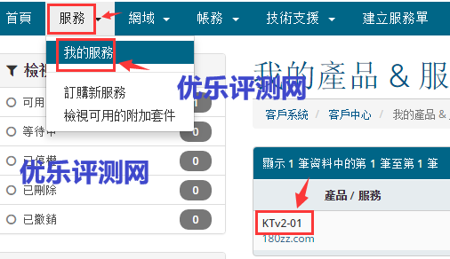 1.打开TECHNETCAL主页,登录你的账号。然后点击导航栏得到“服务”,选择“我的服务”,然后再点击你的产品,主页是点击“KTv2-01”这个位置,不是点击域名。