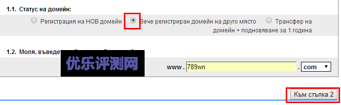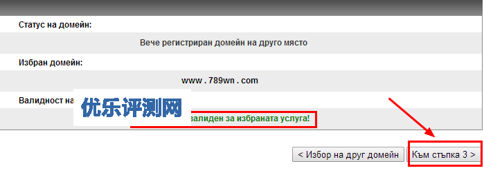 如果显示“Домейнът е валиден за избраната услуга!”表示你绑定的域名是有效的,请再点击下图红框按钮进行下一步。
