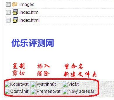 - 如果你需要对上传的文件进行管理,请点击“Kopírova? 复制、Vystrihnú?插入、Vlo?i? 重命名、Odstráni?剪切、Premenova? 消除、Nov? adresár新建文件夹“ 相关按钮进行操作。