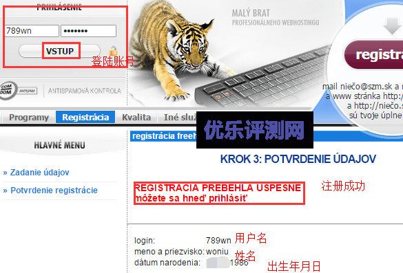 - 打开申请地址:http://szm.com/freehosting/,如果你有账号可以在“PRIHLASENIE”下填写账号密码登陆,如果需要注册新账号,请点击“registrácia”开始注册。