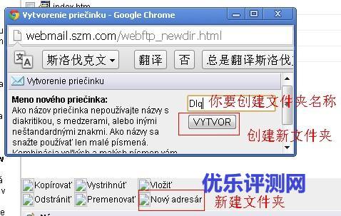 如下图,蜗牛要创建一个文件夹就点击”Nov? adresár“。然后在新窗口中填写新文件夹名称并确认创建。