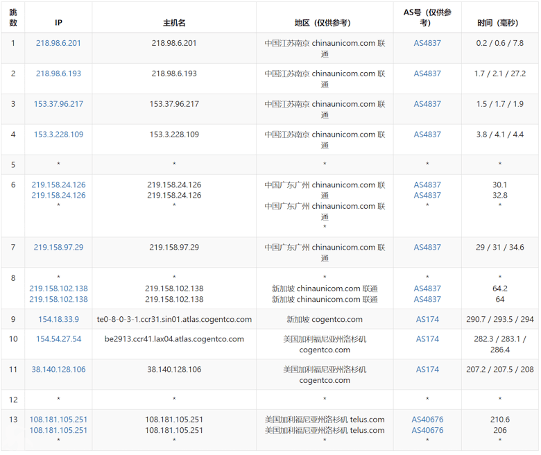 电信的去程可以看到是常规的BGP CN2优化线路,直连电信。