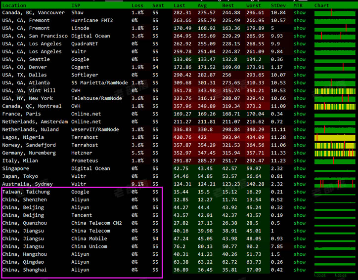 可以看到我们国内地区晚上还没有丢包,还算是稳定的。