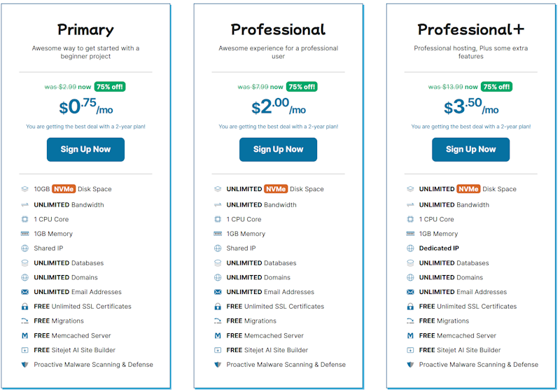 特别值得一提的是,HawkHost的Professional+套餐提供独立IP地址,这是其配置最高的虚拟主机产品。该方案配备无限NVMe磁盘空间和无限带宽,支持无限域名绑定、无限数据库和无限电子邮件地址,还包含免费SSL证书、免费迁移服务等增值功能,月费仅需10.49美元,性价比相当突出。