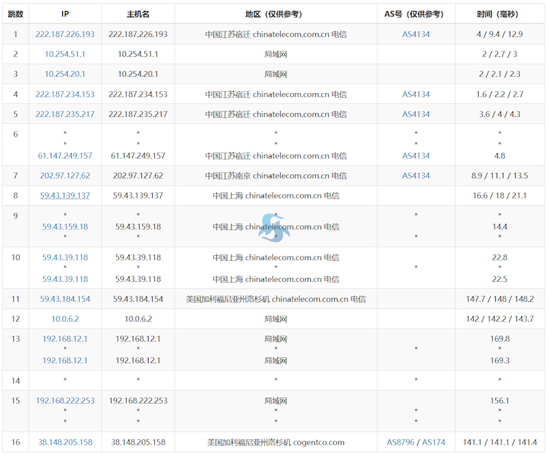 随机电信节点去程,可以看到走的是202.97普通CN2 GT网络,走的是163网络。
