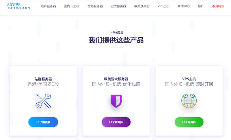 80VPS是一家成立于2011年的老牌国内主机商,隶属于南宁悠米网络科技有限公司。作为一家资历深厚的IDC服务商,其产品线覆盖了虚拟主机、VPS/云服务器以及独立服务器租用等全品类。该服务商拥有广泛的全球机房资源,覆盖美国(洛杉矶、圣何塞、纽约)、中国香港、日本、韩国、新加坡、菲律宾、德国等多个热门地区,能够满足不同地域用户的网络需求。