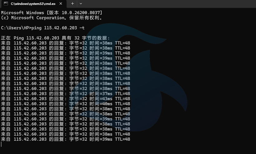 我们先本地的PING测试,可以看到速度还是比较快的。我这里本地是电信网络。然后我们再测试电信去程。