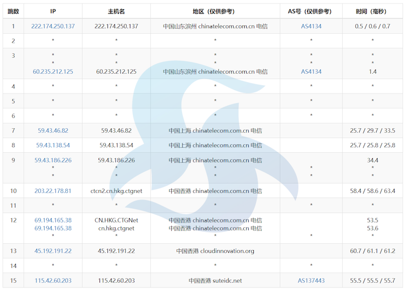 电信去程走的是CN2 GIA(AS4809)线路,晚高峰时段也能保持稳定,延迟和丢包率都比较低,连接质量比较可靠。