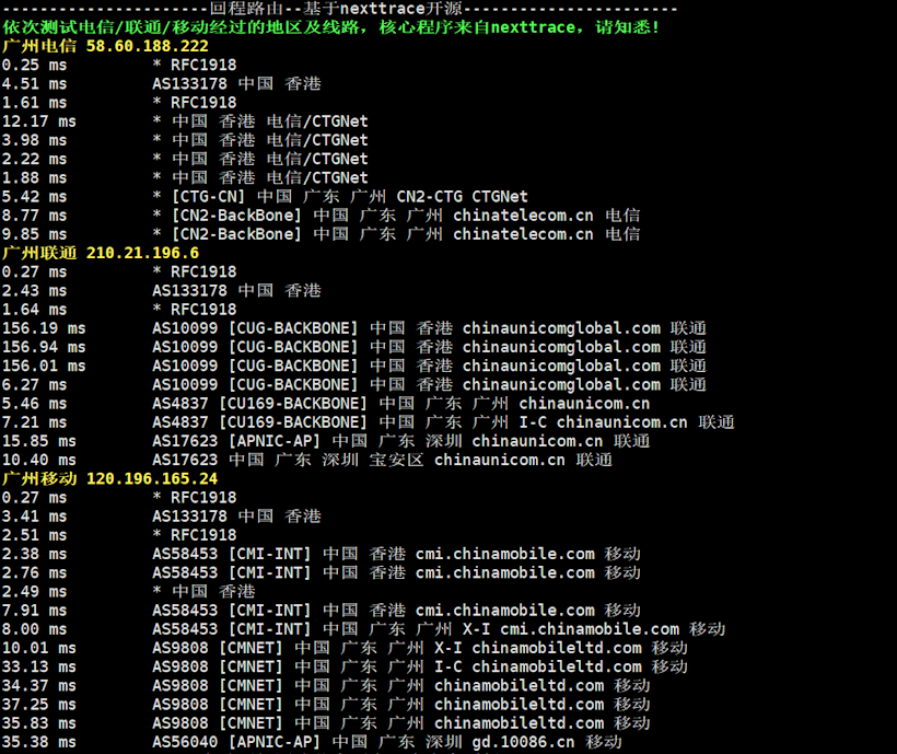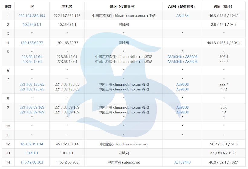 移动去程走的是CMI(AS58453)线路,路径更直接,绕行少,延迟和丢包表现都比较平稳,连接质量可靠。