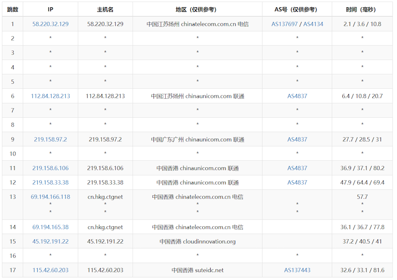联通去程走的是CUG(AS10099)精品直连链路,流量由联通国内骨干网(AS4837)直接下发,路径优化较好,能避开部分国际出口拥堵;在晚高峰时段仍能维持较低的延迟和稳定的丢包表现,适合对网络稳定性有一定要求的业务场景,整体连接质量在联通体系内属于较为可靠的一档。