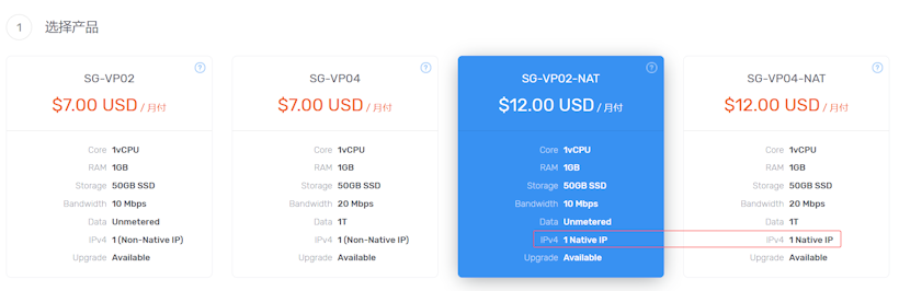 | 1 | 1GB | 50G SSD | 10M不限 | $8.4/月 | 选择 |