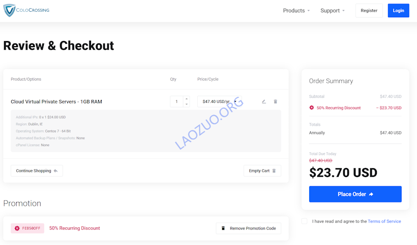| 4G | 3 核 | 100G SSD | 20T/1Gbps | $13.95/月 | 链接 |