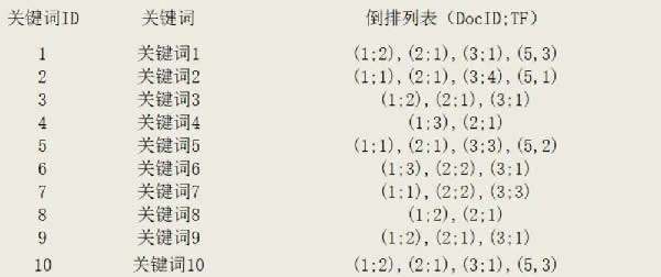 仅仅这样,还不足以对搜索结果进行排序。非作弊的情况下,一个网页出现某关键词次数越多,该关键词越能代表此网页的特征,前提是要过滤停用词(停用词就是几乎每个网页中都有很多,但不能表达任何具体意义的词,比如:“的”、“是”、“了”等等)。如果我们能在倒排索引表里面加入关键词在网页中出现的频率信息(简称:词频–TF),就能对网页进行排序了。如下图所示:当我们的查询词被分词为“关键词1”、“关键词2”时,就能将相关网页排序为(3,5,1,2)。