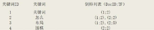 如果一个网页集合中包含某个关键词的网页越少,则该关键词具有越好的网页区分能力,故IDF越大,即具有更高的权重。假设上图中的“关键词”、“怎么”、“布局”、“围棋”的IDF分别为2.5、0.3、0.8、3,每个词的TF乘以IDF后求和,得到网页1、2的相关性分别为:7.2、4.6,所以搜索“关键词怎么布局”的排序结果为(1,2),就比较符合实际了。