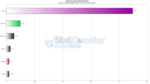 国内各搜索引擎市场份额可以参考StatCounter Global Stats近一年的数据