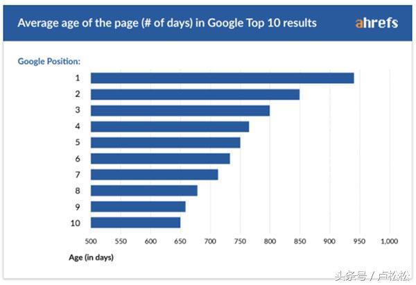 可以看到,排在前10的页面平均是2年以上的页面,越靠前越老,排在第一页的平均存在了将近3年。