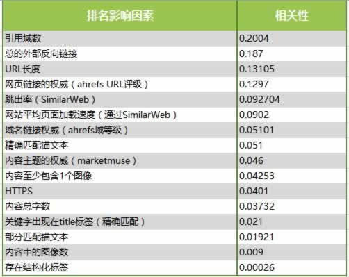 a) 排名因素中HTTPS与搜索引擎排名有相当高的相关性,这其实也并不奇怪,HTTPS是趋势所在,能保证网站的安全以及减少流量劫持的风险,搜索引擎不止一次提及过HTTPS对于排名的优势所在。