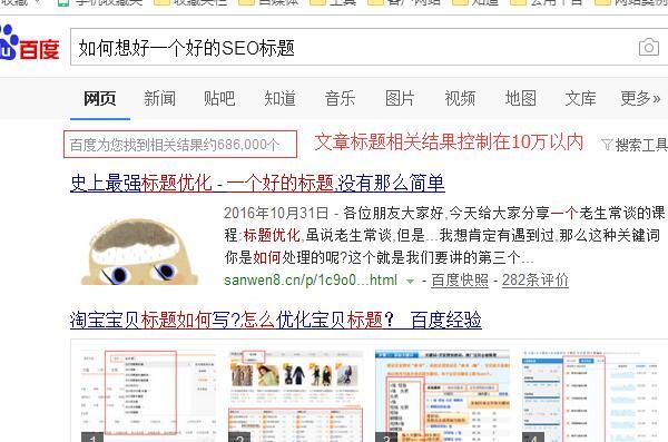 a.修改文章标题以及内容前后:大家可以拿标题到百度搜索框去搜索,看看相关搜索量能达到多少,若是达到一百万左右,那么就要适当的修改标题了,修改后的标题再拿到百度搜索框搜索一下,看看相关搜索结果又多少,一般最好控制在10万以下。