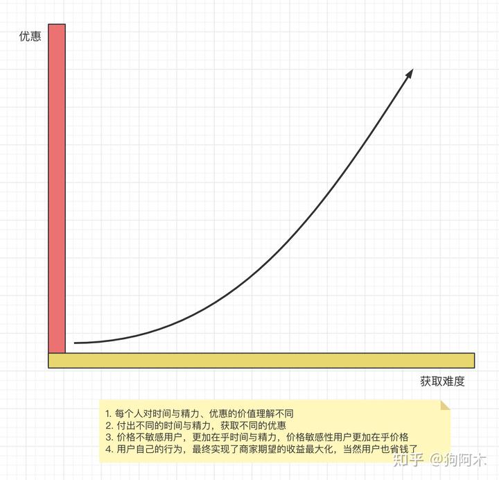 通过这样一个付出成本获取优惠的机制,实现了针对不同用户的动态优惠,完成了用户分层与针对每个用户的区别定价;