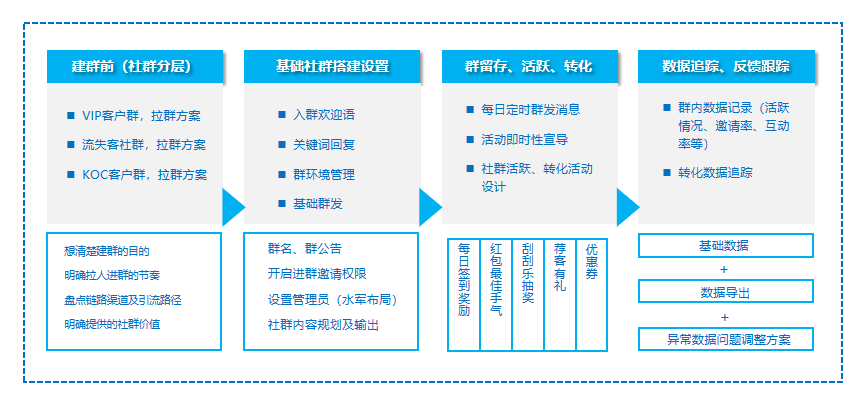 品牌可以针对大促活动新建立一批活动专属的快闪群,通过活动快闪的形式来做下一轮的大促营销。建立此类快闪群的重要指标之一是社群分层。根据不同类型客户,建立专属社群,将有助商家有针对性地实施运营方法。