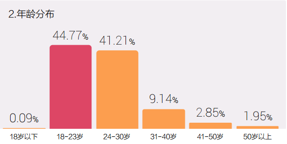 从年龄、城市分布来看,18-30岁人群占到近86%,二线城市及以下占近73%。18-23岁主要是大学阶段,24-30岁则多是职场执行层,同时又处在竞争相对不那么激烈的小城市,他们都有一个共同的特点——闲。