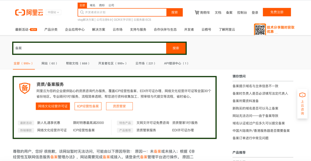 关于备案的准备与流程,这里以阿里云平台为例,且强烈推荐大家使用阿里云进行备案。