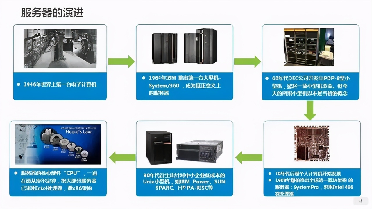 x86服务器:采用CISC架构处理器。1978年6月8日,Intel发布了一款新型的微处理器8086,意味着x86架构的诞生,而x86作为特定微处理器执行计算机语言的指令集,定义了芯片的基本使用规则。
