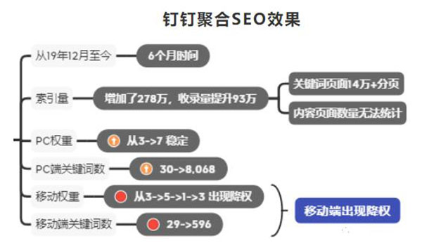 这个玩法是真实可操作的,是一个朋友在请教我一个seo问题的时候,给我发了一个网站,让我分析分析,然后本着钻研的精神,研究了那个网站的方法,居然让我发现了一些端倪。钉钉聚合SEO效果 -钉钉聚合策略-内容来源分析 -词库分析 -总结!