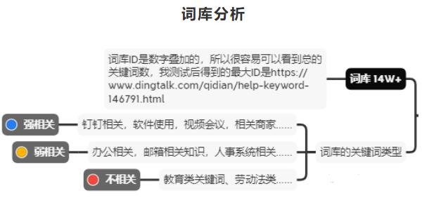 强相关:钉钉相关,软件使用,视频会议,相关商家……弱相关:办公相关,邮箱相关知识,人事系统相关……不相关:教育类关键词、劳动法类……我下载了当前钉钉有排名的关键词数据,一共8223条,大家可以参考哦。